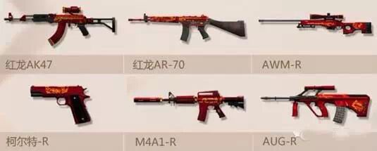 红龙枪系列凭借喜庆的外观和高效的性能,获得无数玩家的青睐。其中最具代表性的莫过于红龙AK,后座力道低,威力强劲,堪称AK系列的经典之作。作为中国风系列的定制,颜色外观都是数一数二的,非常讨人喜欢,洋溢着节日的气氛。除此之外,AWM-R、红龙AR-70、AUG-Red每一款都让人爱不释手。
