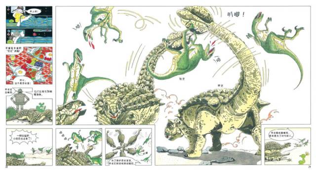 为了保护恐龙宝宝,甲龙们拼命地摆动尾巴。