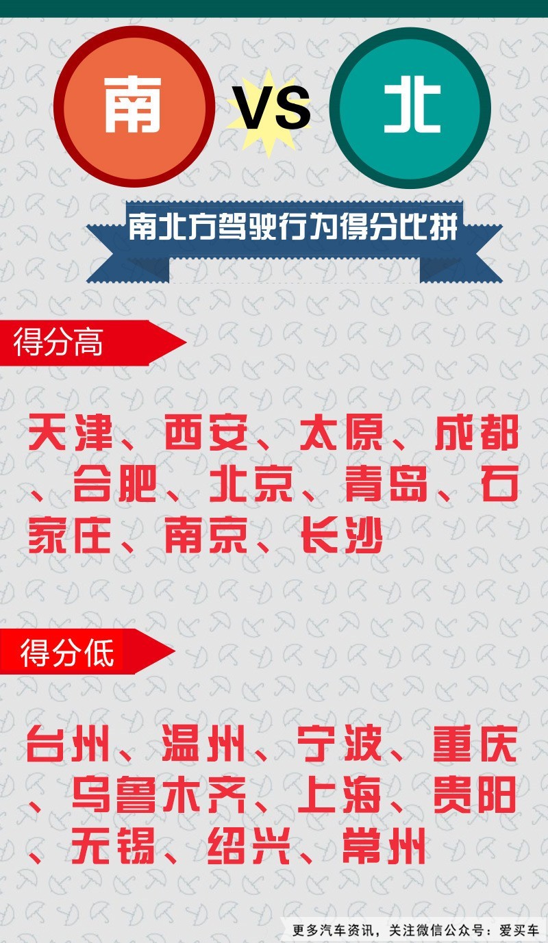 驾驶评分较高的城市有天津、北京、青岛、石家庄、太原、西安等城市,而驾驶分数较低的则有台州、上海、无锡、绍兴、温州、宁波等城市。也就是说,北方的车主在驾驶过程中较少超车、急刹等行为,而南方车主竟然一言不合就飙车,这个数据还是比较颠覆买车君想象的。