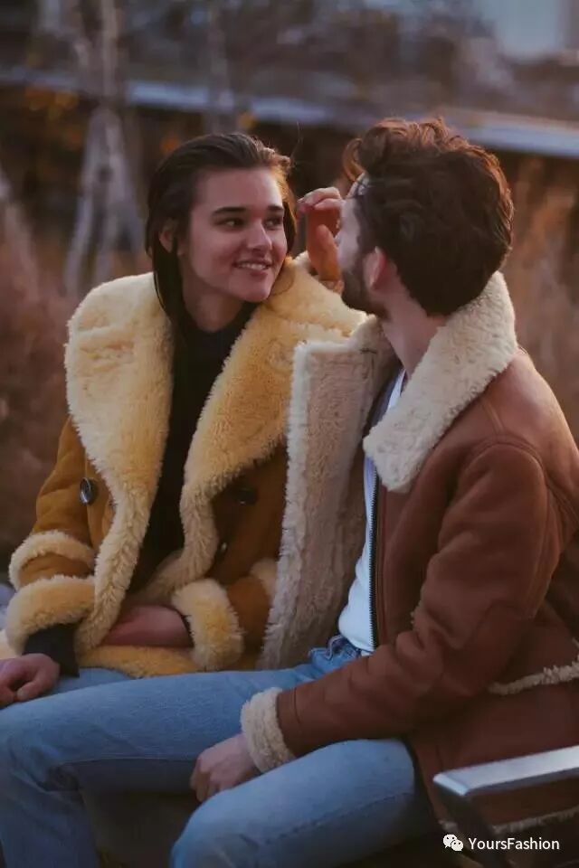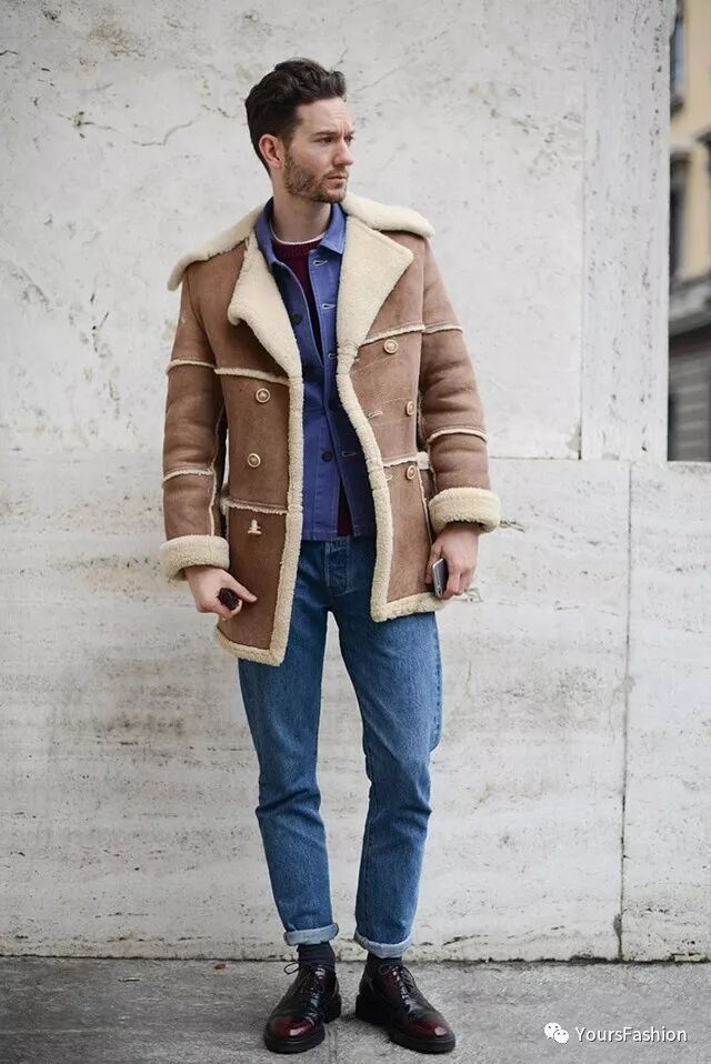翻毛羊羔绒外套搭配更多内搭单品,一是为了保暖,二是为了增加造型层次感。室内外温差的环境下,尤其适合这么穿着。