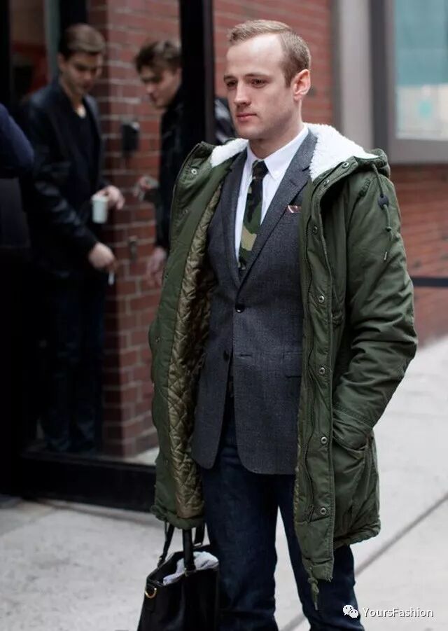 翻毛羊羔绒外套既然可以与优雅高领衫搭配,也可以尝试下西装造型做内搭。最适合上班族,穿上羊羔绒外套去上班,到了办公室脱下露出西装造型。