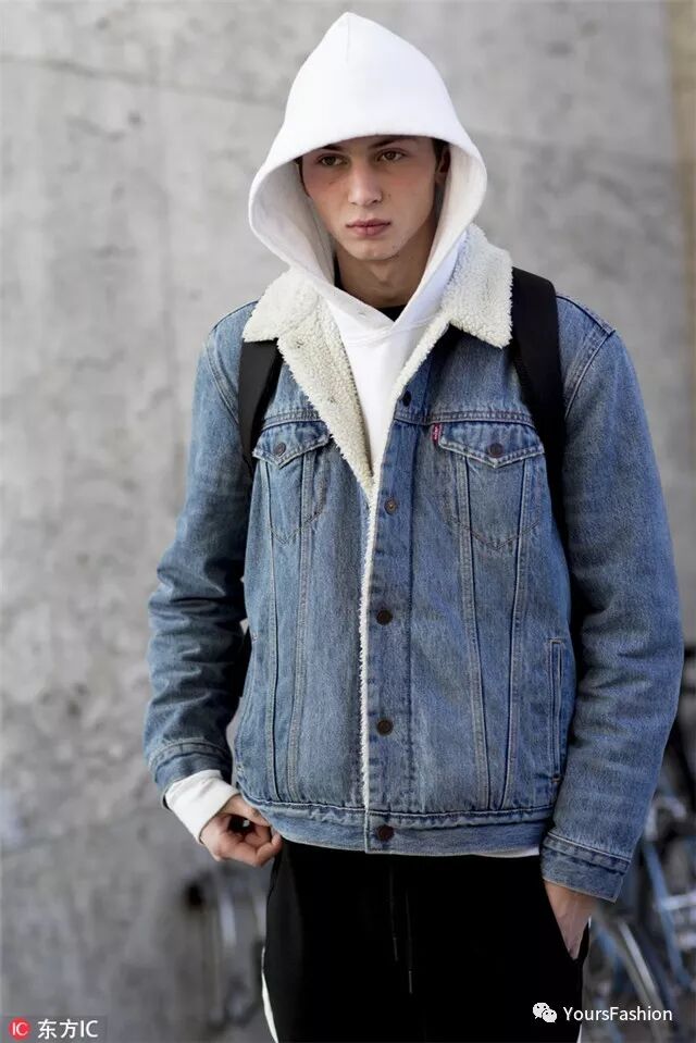 年轻人,不妨选择荷尔蒙不那么强烈的羊羔绒外套,牛仔面料就是不错的选择,年轻潮流时髦还有几分学院风,搭配清新单品更减龄鲜嫩。