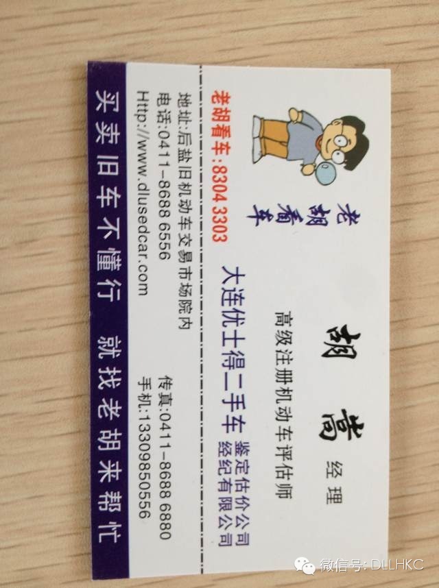 在这里我们老胡看车团队正式通告广大微友: 我们不会往任何私家车上贴小广告,插名片,我们的名片蓝白背景,名片上有我们老胡看车的logo,并且印有我们办公电话83043303。如果没用均属假冒。我们的名片如下图。