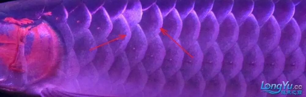 2,选择粗框的小鱼,在20多cm时,无框满片亮是重点,看看上面这只超神小鱼,你只看到鳞片的光泽,对于框的感觉并不明显,但放大鳞片细部你能看到什么?鳞片边缘粗粗的发色预兆已经显现。但请大家一定注意,世间万物有时就是这样耐人寻味,似乎极致时往往与极差仅仅一线之隔。单凭无框的鳞片表现,很多不能够发色的红龙基本都是类似的无框表现,后期可能会有很浅的超细框发色,与极致差之千里(慎重慎重!)。