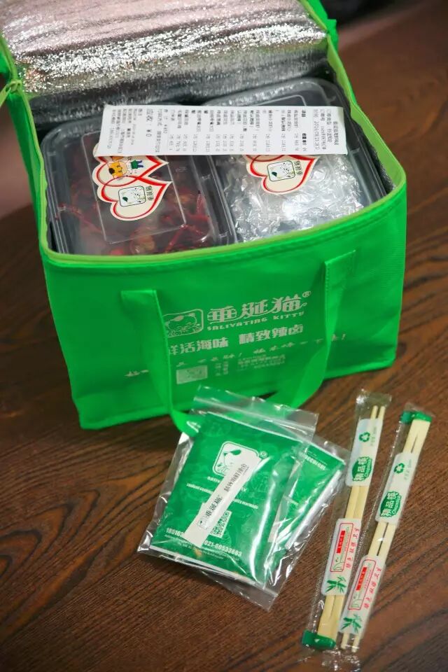垂涎猫的外卖被朋友们评为上海最贵、最远、最晚、最牛的外卖,保温包装打开,筷子、牙签、手套一应尽全,超贴心!