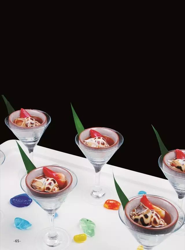 1、毛豆150克洗净剪去两头,飞水过凉,入自制味汁腌至入味后捞起装盘。2、白虾100克洗净,入沸水(加入适量盐、味精、鸡精、黄酒)汆烫至熟后捞起,装入垫有毛豆的盘中,撒上辣豆20克,点缀后即可上桌。纯净水500克、美极鲜味汁20克、盐10克、味精20克、辣鲜露50克调匀即可。2、花螺、北极贝各50个汆水断生,将螺肉取出,去除内脏,与治净的北极贝一起入腌料汁中浸泡一夜。取浸泡的螺肉和北极贝各5个,将花螺肉塞回壳中,1个花螺配1个北极贝装入酒杯中,淋腌料汁即可上桌。野山椒5个、海鲜素75克、白糖250克、清酒50克、东字酱油500克、热开水1000克调匀后晾凉即成。
