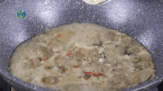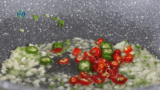 加入一半青红椒炒香后添适量清水