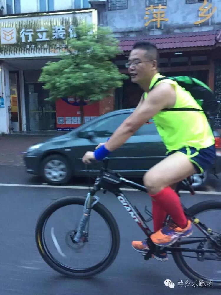 参赛人员或跑或骑或开车前往集结地。骑车者:三哥,上个月刚刚率萍乡三女子在省城夺得江西省城市定向赛南昌站冠军,这次莫非又胸有成竹,大嘴笑成呀克西样。
