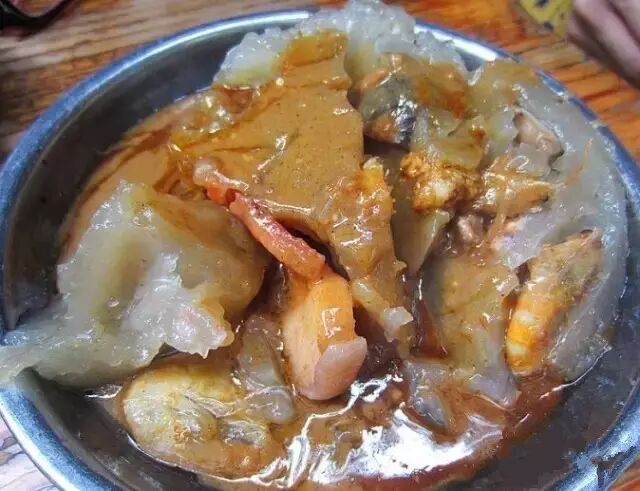 这货有个特复古的名字,叫“鲎hao”粿。因为这个名字古老得连电脑输入法都打不出来。不信你试试。加上鲜虾、蛋黄,米浆熬制的粿肉,还有重要的蚝油酱,让人流口水。