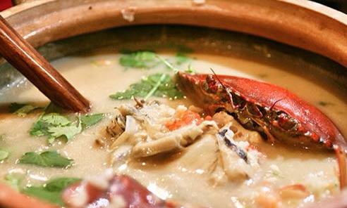 潮汕砂锅粥是与潮汕牛肉丸齐名的经典美食。潮汕海鲜粥用料豪华,煮的时候加入海鲜、干贝、虾、蟹同煮, 将其鲜味融到粥水中,同时又保留本身的嫩滑,鲜美无比!