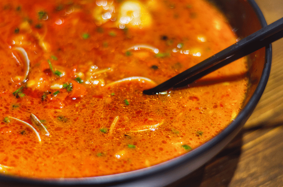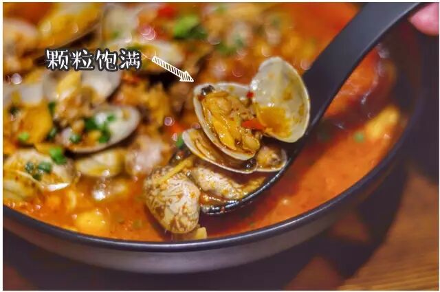 吃他们家的花甲要记着一个要领:汤汁和肉绝对是不分开的!用自家熬制的红油炼成的辣汤,混合着快要蹦出贝壳的花甲肉,火辣辣的滋味儿一下子就从舌尖窜到了喉咙,再一股脑全跑进了胃中,只听得见一句感叹:食在辣!