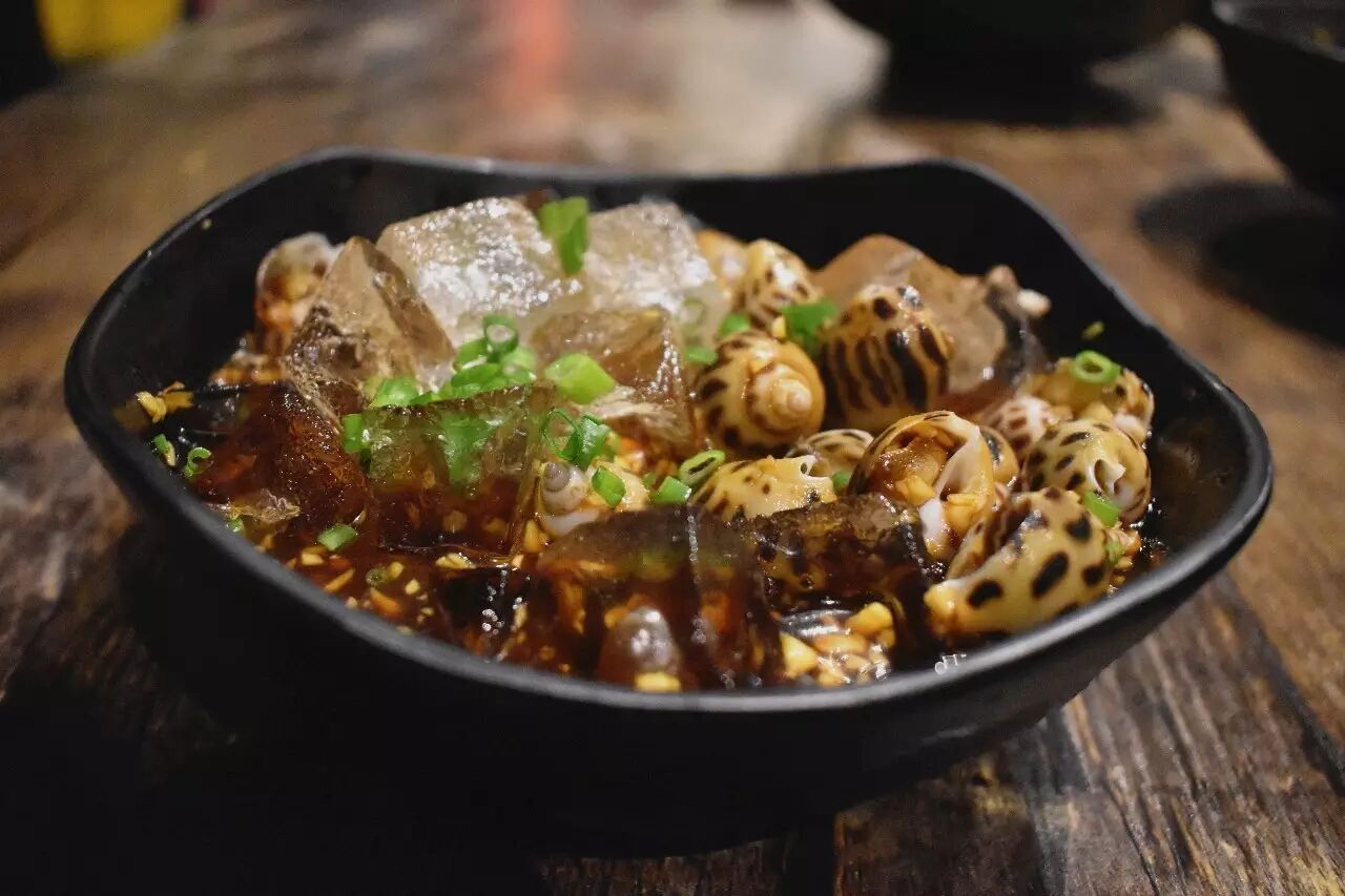 喵喵喵?冷的?放心,乳此阔耐的老板是不可能拿生食给你~煮熟的花螺,抹上芥末、蒜蓉,放在冰块上冷冻降温,收住花螺的鲜味儿~冰凉的口感给快要喷火的舌头迅速降温,厚实透亮的肉嘎嘎也是新xuan干净的hin,是一道炒鸡适合配啤酒的菜肴哟~