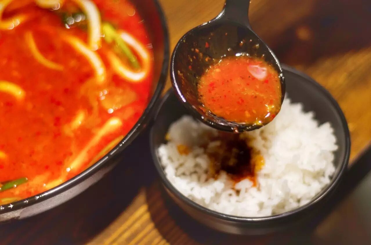 由于汤汁实在是太美好,忍不住叫了一份乌冬面和一碗白米饭~白花花的面条下在饱含辣香的汤汁里面,稍微一拌,就入了味儿~个人比较偏好粗粗长长的面条,要筋道才是好面哇;作死用了最辣的香辣蟹汤底拌饭,结果是直接炼成了三味真火成仙咯~