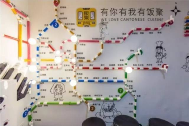 地铁文化毫无违和感地融入到餐厅的每个角落
