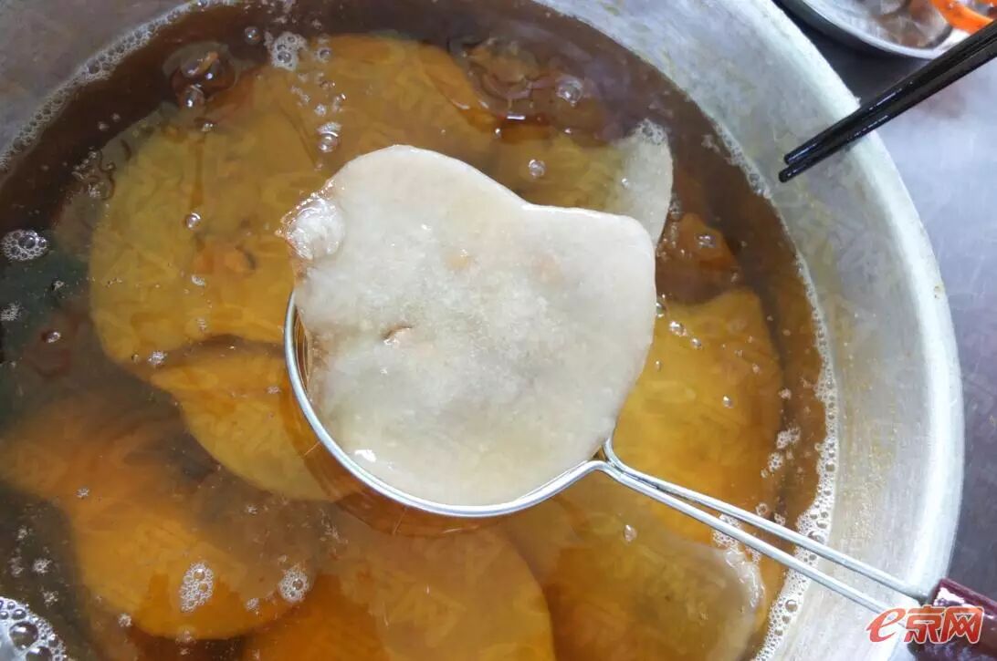 有顾客上门,店主便从锅中捞起鲎粿,盛于盘中。