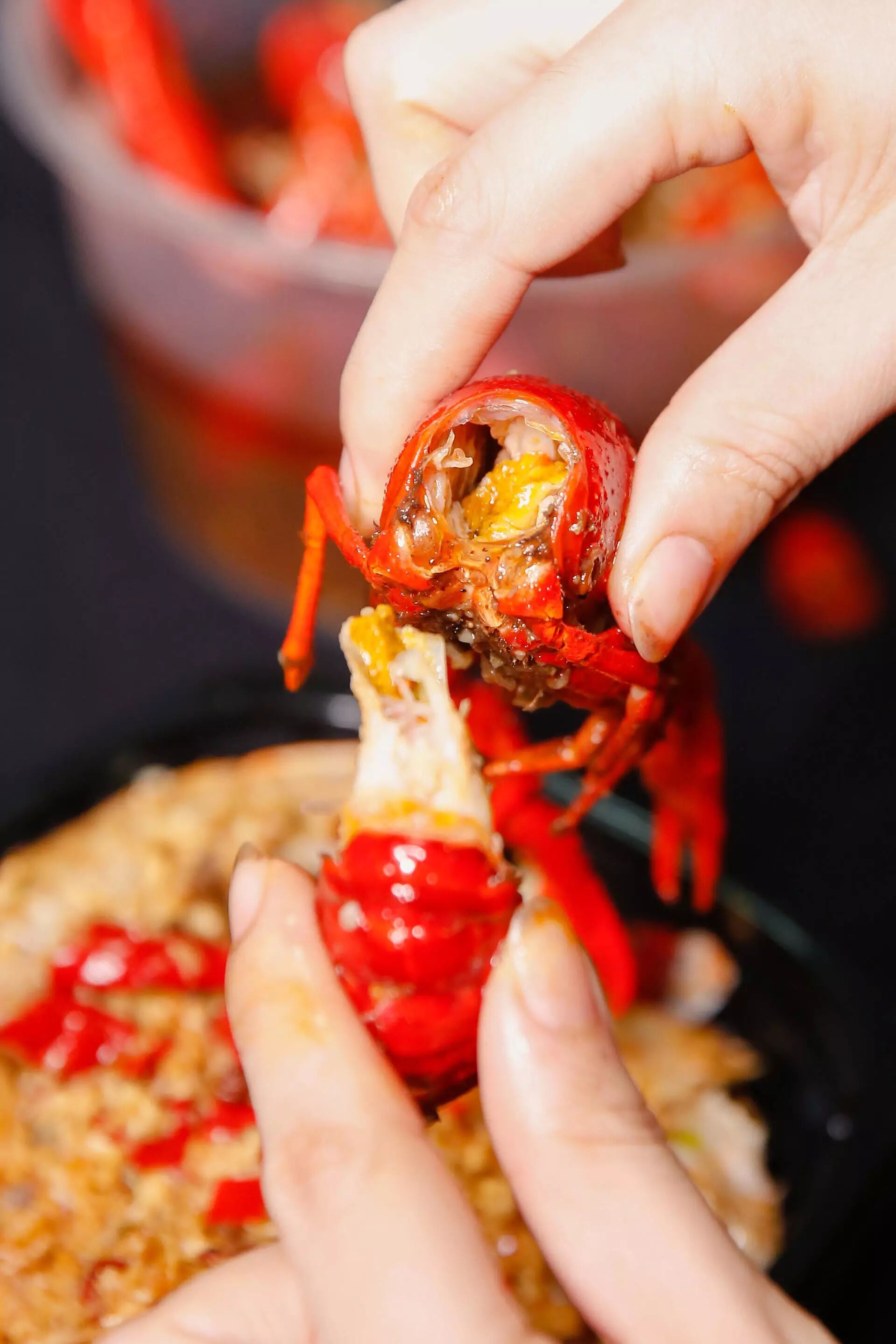 新鲜的小龙虾剥壳炒鸡轻松,整块虾肉很饱满,带着虾膏,一口闷最满足!