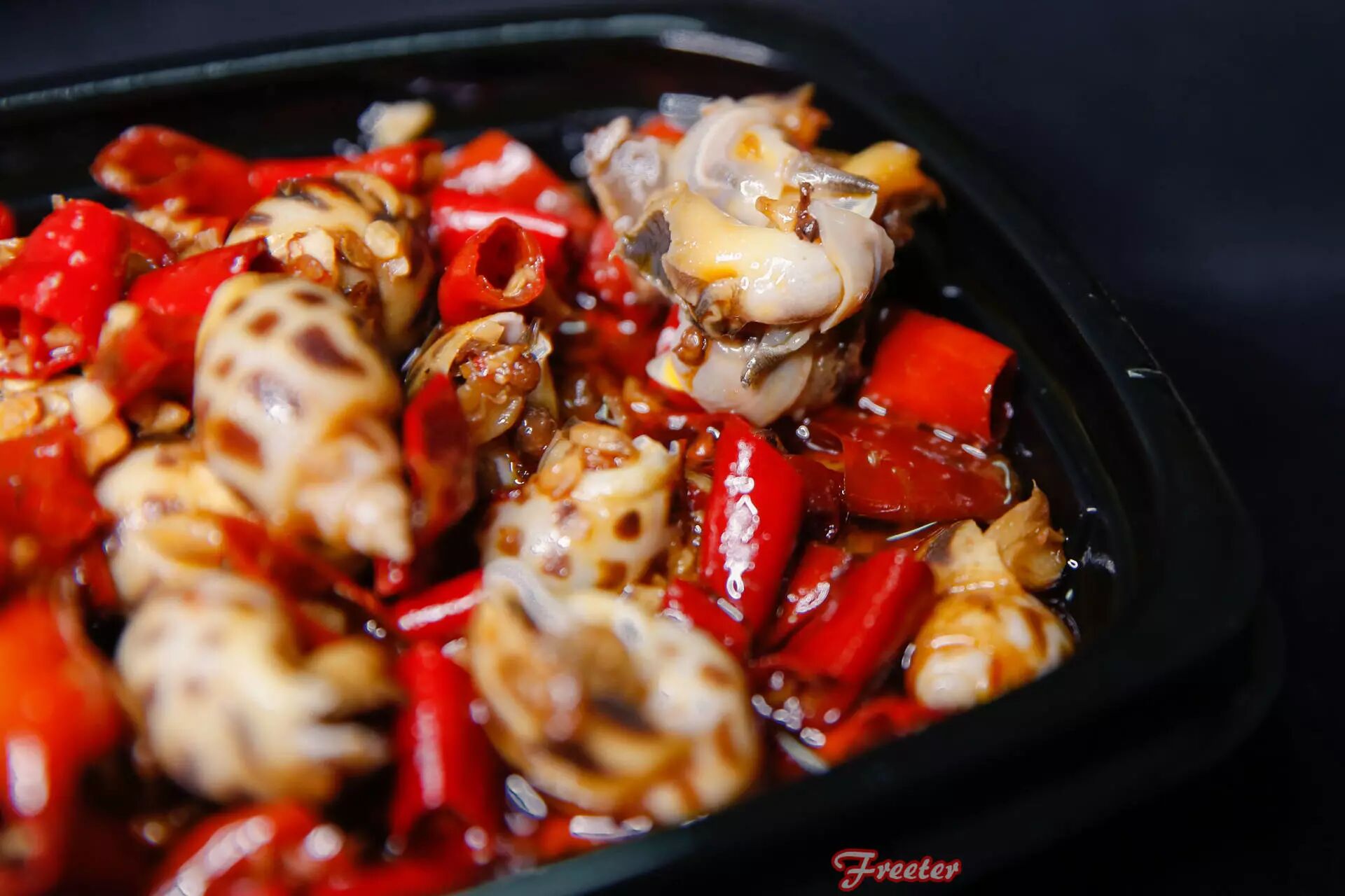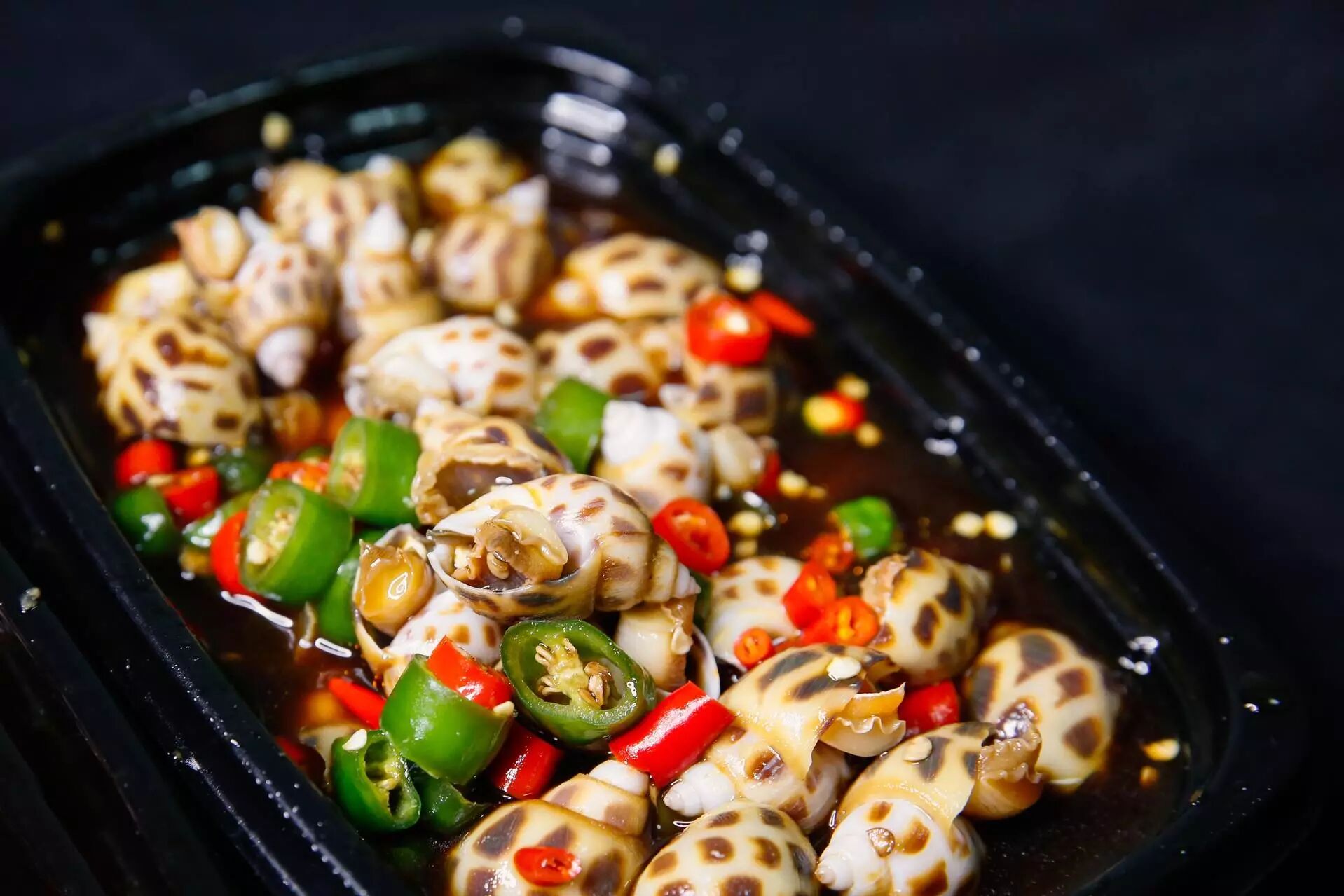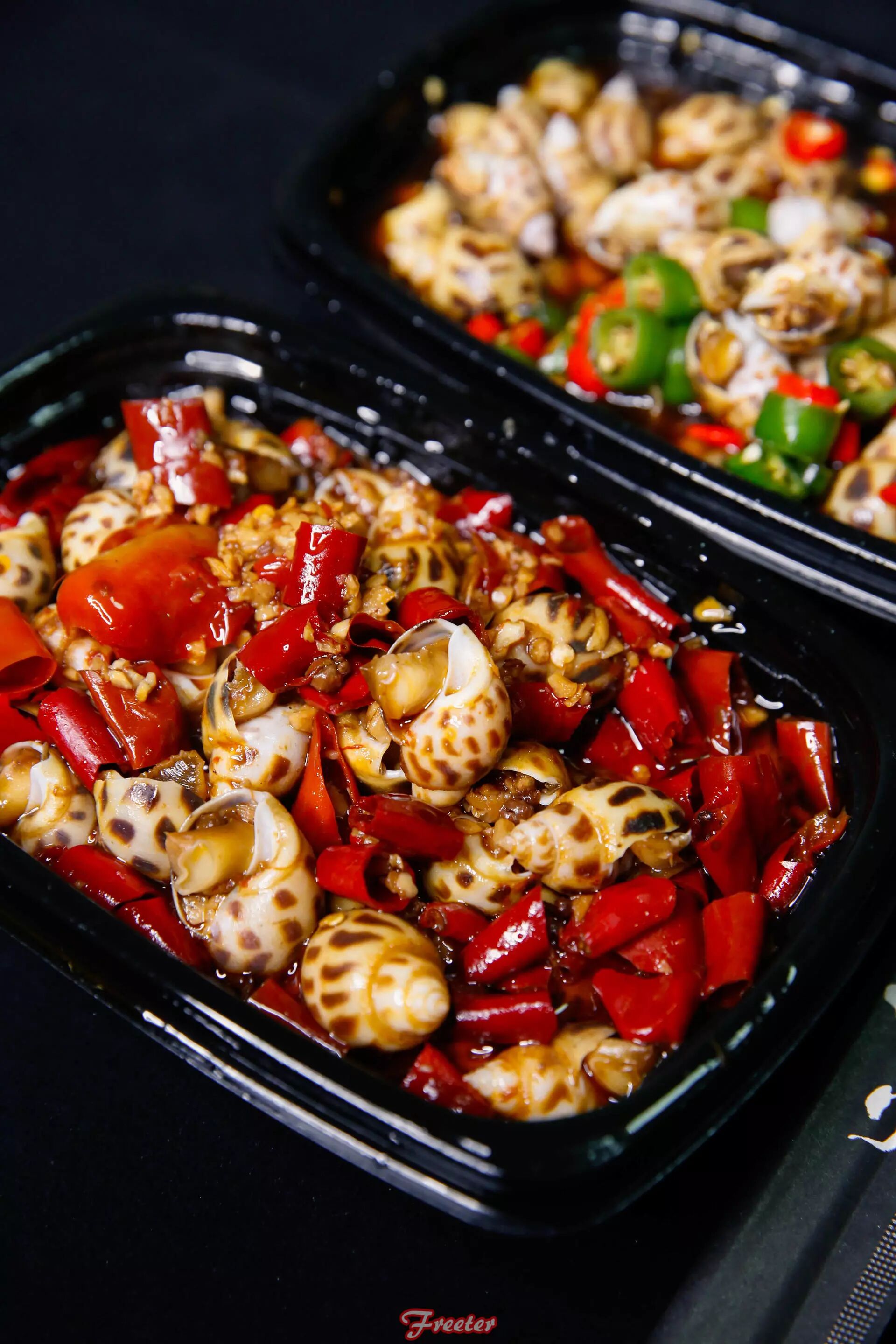 花螺有两种口味可以选择,冰镇花螺对比麻辣毫不逊色