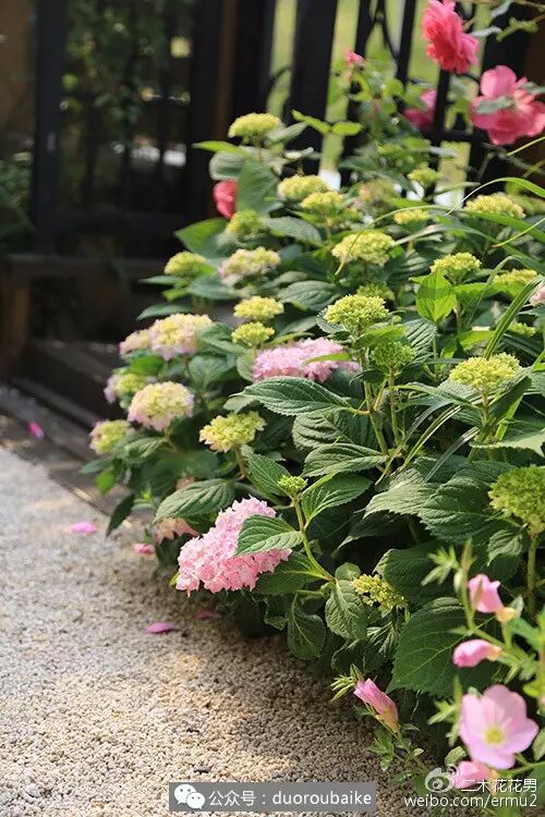 绣球也是花园里必不可少的品种,我特别喜欢“无尽夏”,去年开花时间4个多月,期间花的颜色从蓝色转变为粉色,然后慢慢变淡,最后变成绿色花朵。花园里栽种的位置基本全都在没有太多阳光的围栏下或者北面。不知道是不是土质的原因,我们这里的土壤里含沙太多,感觉就和养多肉的原理一样,长得都非常壮实。唯一缺点是很容易缺水,有时晒一天就焉掉了,浇水后第二天又满血复活。还有南方花友常说的垂头现象,在我这里没有。总之也是北方花园首选植物啦!露台上栽种也很不错的,适合在花盆里。