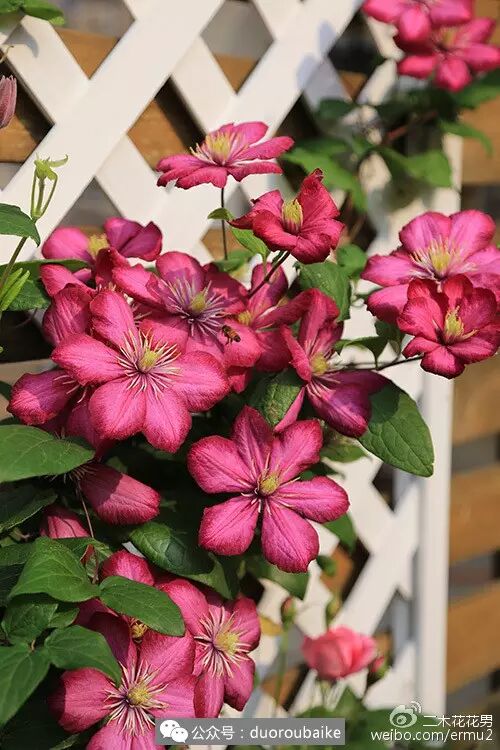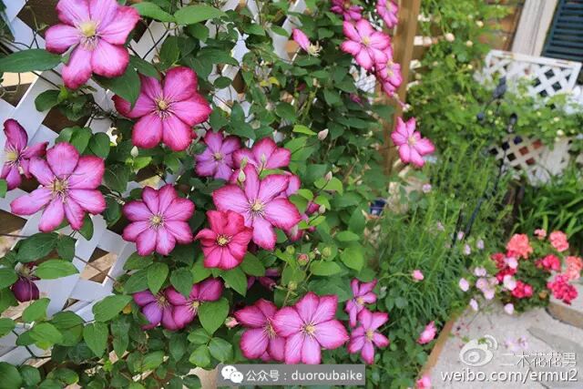 藤月-大游行 这个就不用介绍太多了吧!燕子姐栅栏上全是她!还有“安吉拉”,这两个品种是开花机器,花墙用她们准没错!
