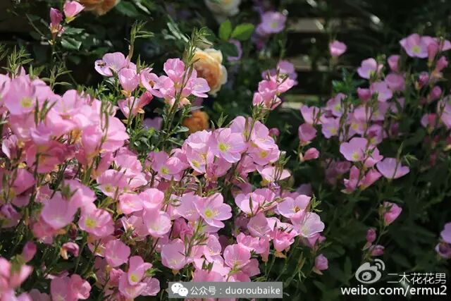 粉色的 “月见草” 最早还是从燕子姐家移来的,开始只拿了一点点,经过3年后完全爆发,期间还被我整理过好多次,也是非常不错的宿根植物。花期可以从春季一直开到秋天,冬季枯死后需要清理枯枝,来年又会从地里生长出来。属于扩张型,适合种在花园最外围下层。