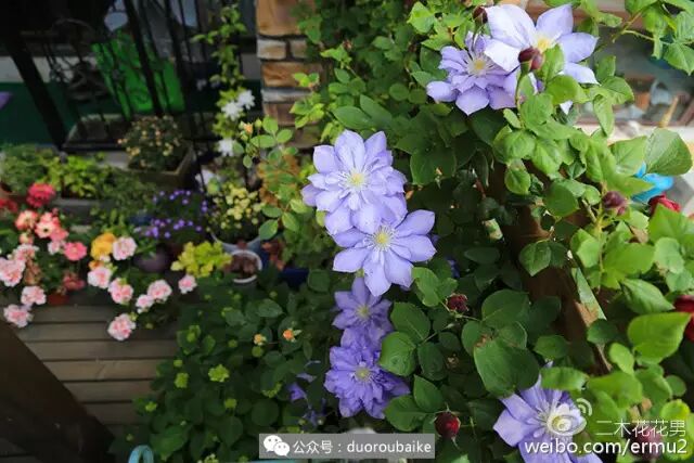 虽然花园是去年重新改造的,不过有很多植物已经在花园里养了3-4年了。下面这棵铁线莲-里昂,来花园接近4年时间了,期间本来长得很大一群的,后来为了布置二木花园,从自家地里挖出来种到了多肉花园那边。然后过了3个月被挖走的地里竟然又重新冒出嫩芽,开始还觉得奇怪,后来小芽慢慢成长,就变成了现在这样子。经历这么多,现在再也不想去移栽它了。