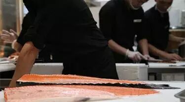 每天早上8点,店里会到货20到30条大西洋鲑,雷打不动,而这些当天都会全部卖完,想不新鲜都太难~