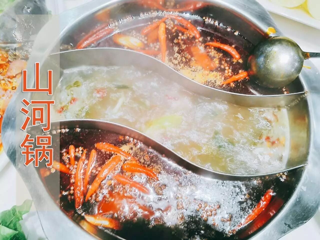 山河锅独家研发,一改吃火锅转锅之弊病,红汤两边涮,浆水穿城过,聪明的你有没有发现这就是兰州最好的诠释,黄河穿城过,两山夹一河。