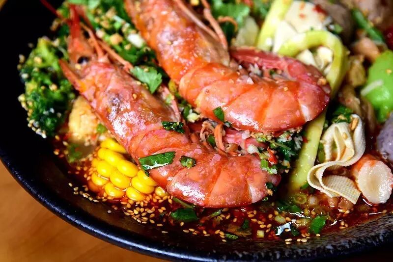 我儿子最喜欢吃阿根廷红虾。一个虾都比手掌还长,虾肉很嫩弹性十足,微微的辣味淡淡的咸鲜我们家小伙子每次都是两只起步,剥壳沾汤,虾头里的虾膏霍米饭里能吃辣能当家哈。