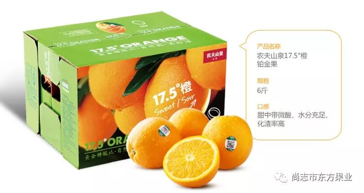25.3度鲜橙(家庭装6斤14枚)48元/箱农夫山泉17.5度橙58元/箱(家庭装)