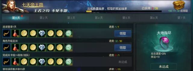 活动时间从新账号进入游戏开始计算,到第7天24点活动结束。