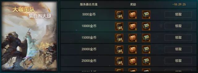 大咖带队活动面向全服玩家,服务器总充值金额达到系统规定的档次后,全服玩家都可领取该档次的丰厚奖励。
