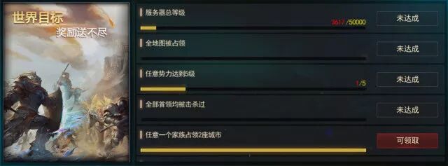 世界目标为全服活动,系统在游戏内设置了多个世界目标。只要某个世界目标在服务器内被达成,那么该服务器内的所有玩家都可获得奖励。