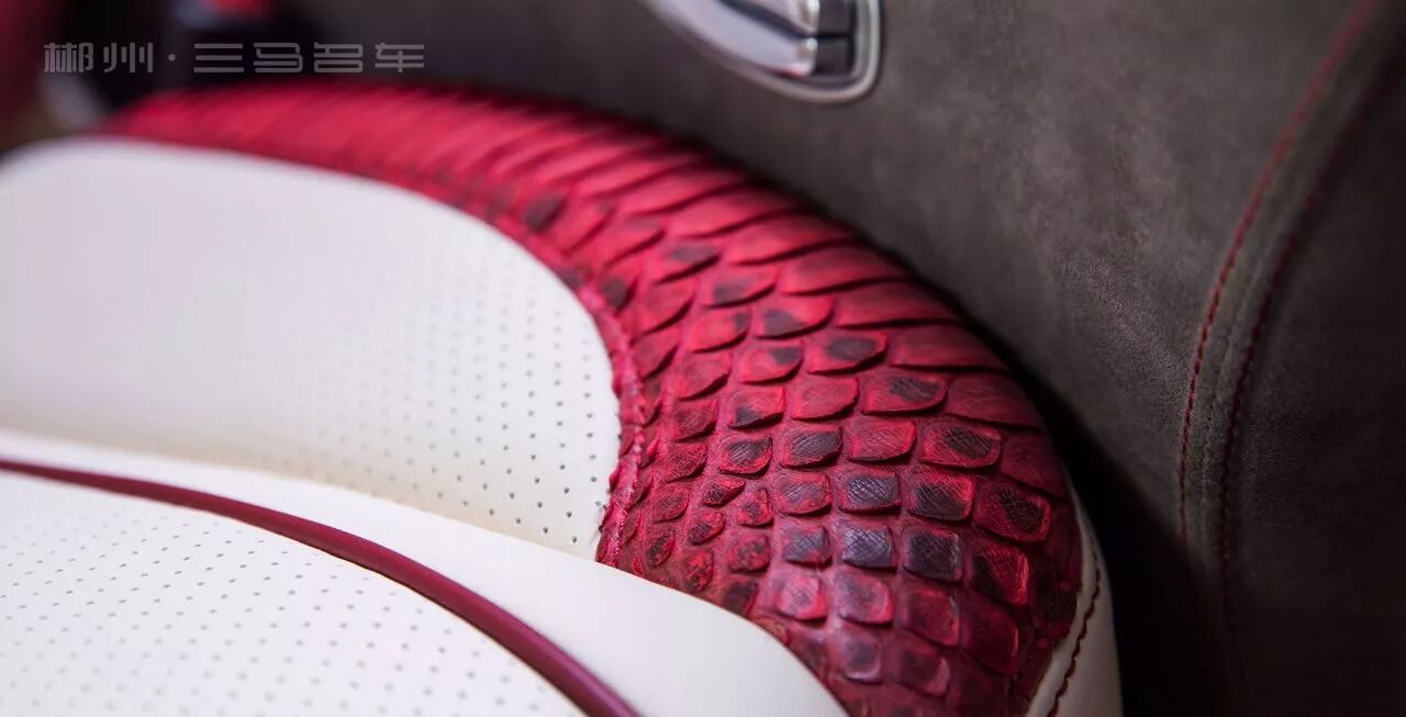 整车内饰采用来自于爱马仕Hermès®御用皮革供应商,日本成田公司提供的“红龙”雨林蟒皮