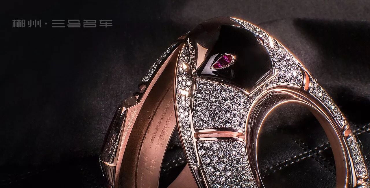 搭载的Oliver Hemming®游艇级钟表被18k玫瑰金、S925银、缟玛瑙及数百颗锆石组成的蛇形元素环绕,至精至美、别出心栽