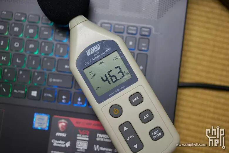 GPU满载49.1dB,这个成绩对于一台游戏性能本来说已经是很漂亮了.