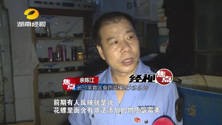 “前期我们接到反映这个越南花螺里面涉嫌含有非法添加物质氯霉素。”长沙芙蓉区食药监稽查大队队长余陈江介绍。