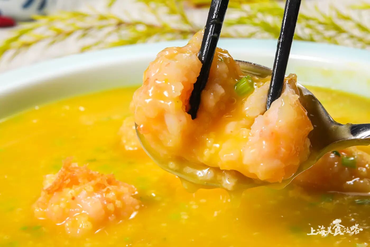 小米粥配合虾滑,也是别具一格的创新了吧。