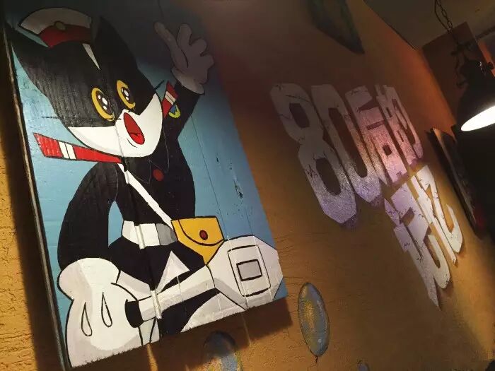 墙上的黑猫警长,让人想起从前放学急着跑回家坐在电视机前的自己。将来我要做一个警察,抓坏人的好警察1这样的诺言你也曾有过吧。不过那会儿,都是被强行关掉电视抓回饭桌的吧。