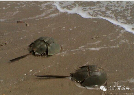 鲎(hòu),常见于亚洲和北美东海岸。又称爬上灶、夫妻鱼、鸳鸯鱼,东方鲎等,马蹄蟹,海霸王,但不是蟹,而与蝎、蜘蛛以及已绝灭的三叶虫有亲缘关系。阳江的鲎属中国鲎。