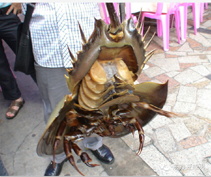 现在鲎已不多见,是省重点保护动物。但阳江不少食肆养着鲜活的鲎待售,价格还很便宜,还有屠宰许可,可能是阳江的鲎太多了。