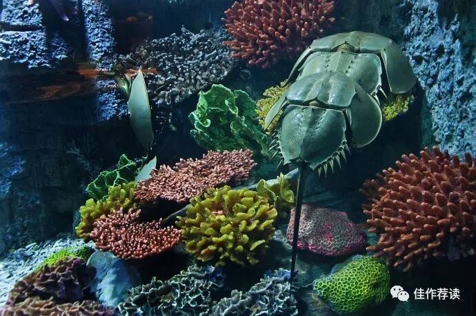 过了些日子,我到厦门大学去参观生物展览会,蒙方君殷勤招待,参观以后同在招待室里休息,看见壁间挂着鲎的标本,是大的,就要求拿了下来观察,这才看了明白:原来嘴巴长在腹部的中间,从嘴边四展,生着六对脚,能曲能伸。脚端各成钳形,仿佛是虾所有的,可是长得大。第六对脚较长,末端分裂为五,其中有一支特别长出,另成一个钳形。