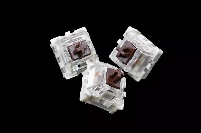 凯华BOX有白轴、茶轴、红轴和白轴,除了白轴对应青轴外,其他几种轴都对应各自原有颜色的轴,手感也差不多。另外凯华还有一种巧克力轴,对应Cherry ML轴,主打轻薄便携。
