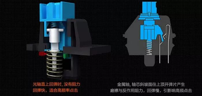 光轴三代在二代上加装了平衡杆,于是也被称为天平光轴,光轴还是实用光学导通结构,保留了极快的响应时间和超高的使用寿命,十分适合用于电竞。