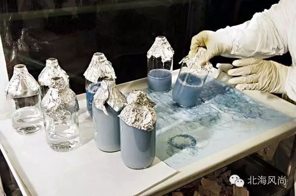 每只鲎都将被固定,然后他们使用不锈钢针刺入鲎的心包以提取输往心脏的含氧血。每个消毒瓶大约能收集到100毫升的血液。