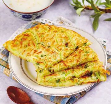 4.平底锅内放油,倒入拌好的蛋糊,小火煎至基本定型时翻面,最后煎至两面金黄即可。
