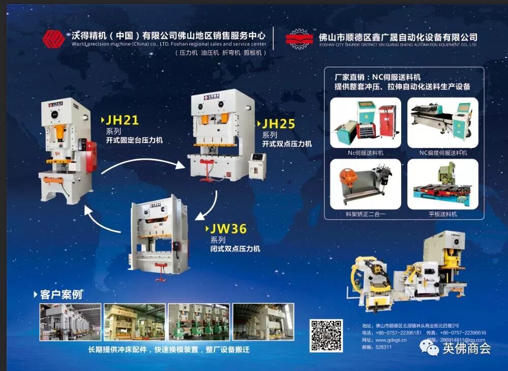 提供整套冲压、拉伸自动化送料生产设备;沃得精机佛山销售服务中心(压力机、油压机、折弯机、剪板机);长期提供冲床配件,快速换模装置,整厂设备搬迁,翻新,改造,维修保养大型钣金冲压设备,液压设备。