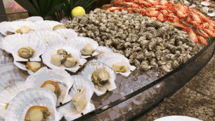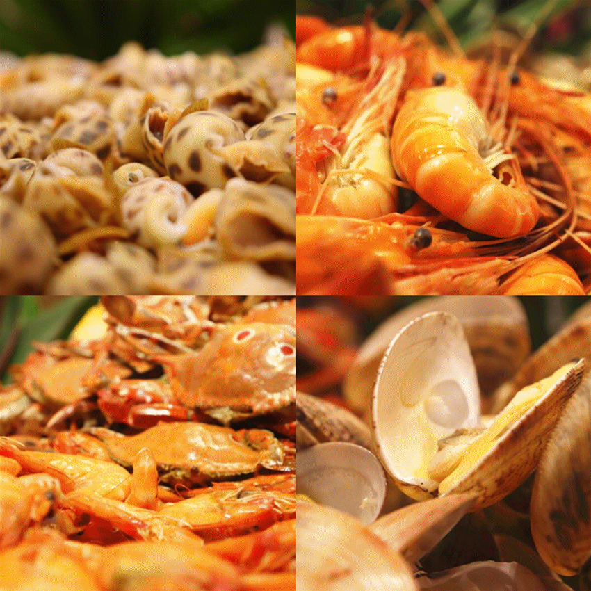 堆成山一样的海鲜任君挑选,扇贝、螃蟹、泰国虾、花螺,光吃海鲜都让姗妹无暇顾及其他美食了,真的想向天再借10个胃!!