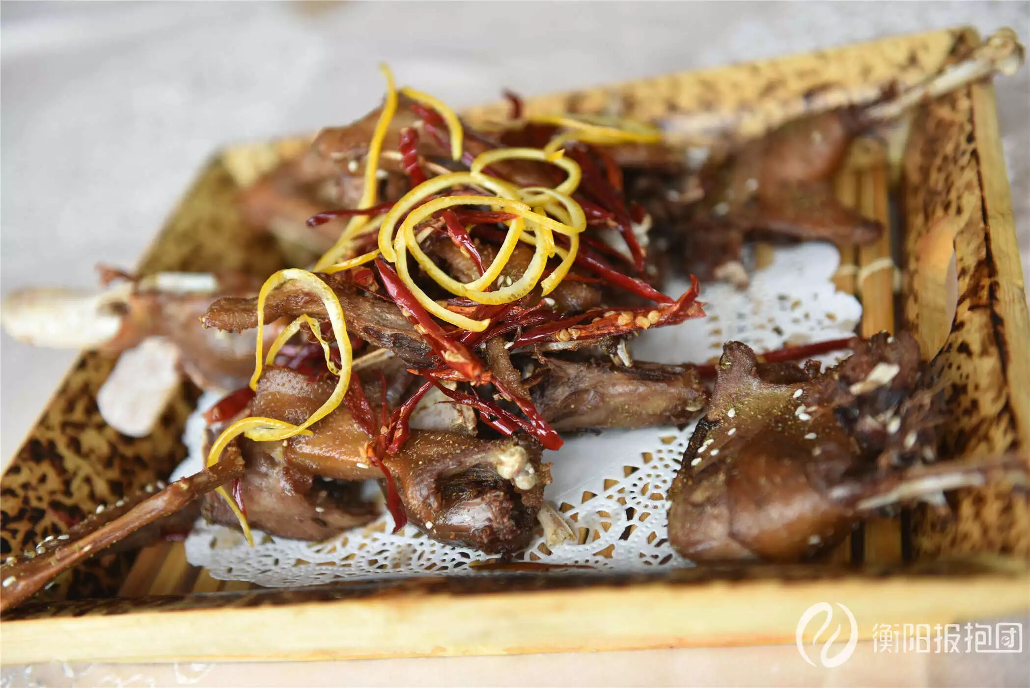◇报抱妞每次去点橙皮鸭都要等二三十分,所以,干脆直接在去的路上就订好了,橙皮鸭制作过程是繁琐的,陈皮、草果、甘草等熬制而成的卤水中腌制3小时,经油炸酥,再加干红椒、孜然粉爆炒,经卤、炸、炒后的“桔香鸭”鸭肉仍可用手撕成丝,肉质丝丝桔皮清香,入口不干柴,成品色泽深红,皮肉酥香,不用看字,想画面就想去撕它一条腿。