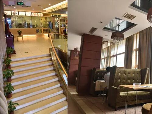 ◇金黄色的吊顶,现代化的楼宇,纯白色的桌布,遍布四周的绿色,顶上柔弱系的灯光射在桌子,不用点开胃菜,食欲都能大增。