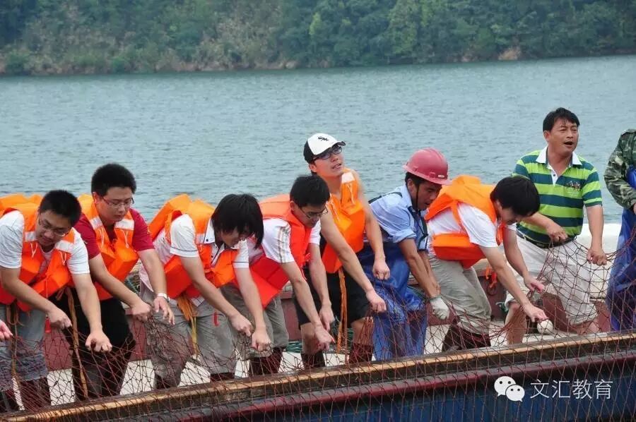 学生在千岛湖实习,观摩“巨网捕鱼”